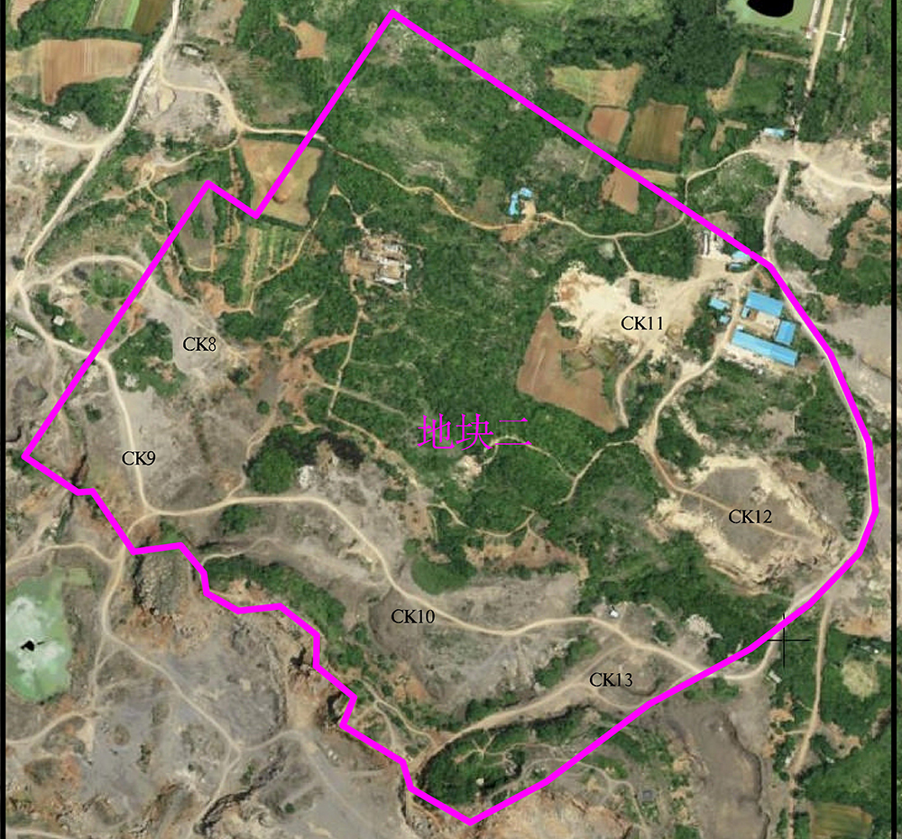2、地塊二東西長約655米、南北寬約630米,面積0.2320平方千米,整體地勢南高北底,地面標高約64~152m。地塊二范圍內共有CK8、CK9、CK10、CK11、CK12、CK13,六個歷史采坑。(圖1-3)