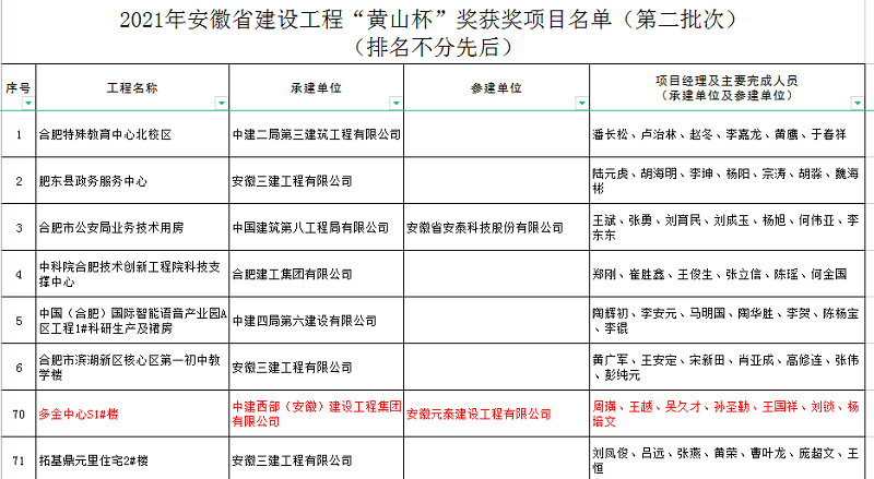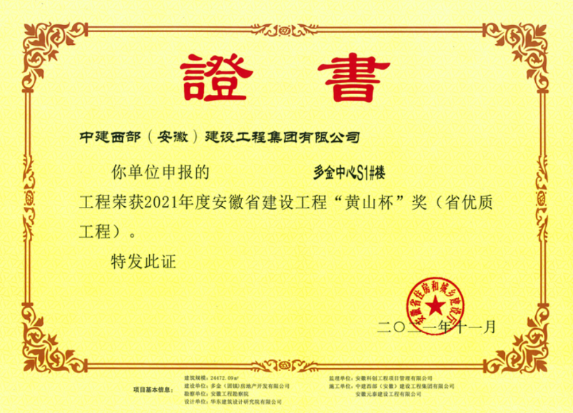 熱烈祝賀中建西部固鎮多金中心S1#樓獲得安徽省建設工程黃山杯獎
